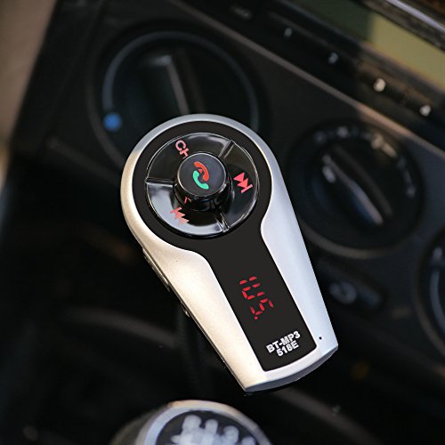 ETvalley Bluetooth Car Charger FM Transmitter with USB Port Car Charging Hands-Free Calling, MP3 Player, GPS Voice Navigation and Volume Controller, Black