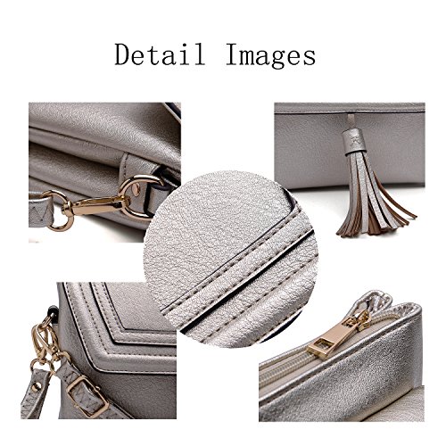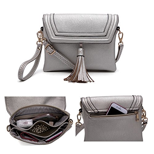 The Crossbody Bag features:Snap and top zipper closure,back outside zipper pocket.3 separate compartment and detachable/adjustable strap,1 Interior zipper pocket and 2 Interior slip pockets, which gives you easy access at your fingertip to multiple pockets on handbag for comfort use.
