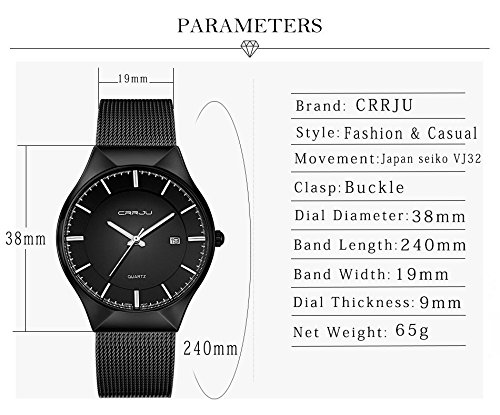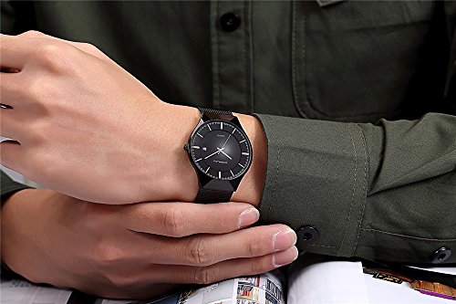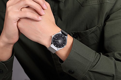 -. Feature : Imported Japanese quartz movement,Keep Perfect Time,Accuracy:+/- 60 seconds per month,Battery life :2 years. / 30m(3ATM/98FT) waterproof is suitable for everyday used. Splash/rain resistant or short periods of recreational swimming. Not suitable for sauna, bathing, diving. / Minimalist,Classic, Stylish, Thin signature styles make AFFUTE Watch deserve a spot in every man's collection. No matter business, casual, indoor activities or daily use.It's also a tremendous Gift for your family, friend or lover with a special leather package. / Slim Case ,Diameter 1.5 inch / 38 mm ,Dial thickness 0.37inch / 9.43 mm,Net Weight:2.08 oz / 59 g,Strap Length:8.27 inch / 210 mm?with 1 Box &1 Small tool for adjust the buckle. / IPS Plated Mesh Stainless Steel Strap and Alloy Case,Perfect Watch for Summer,Never Fade away during using,comfortable for outdoor activities.