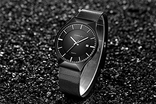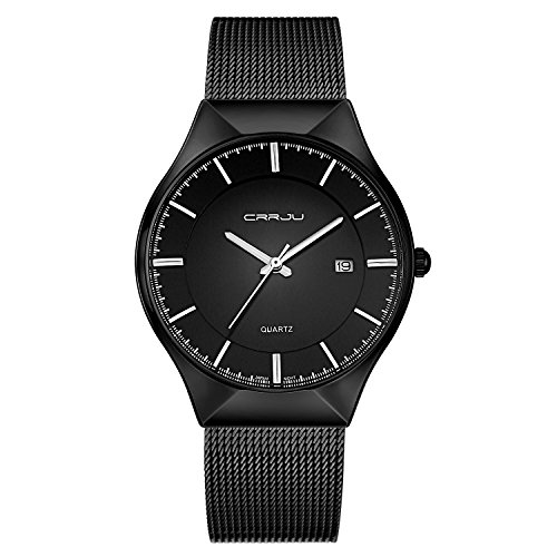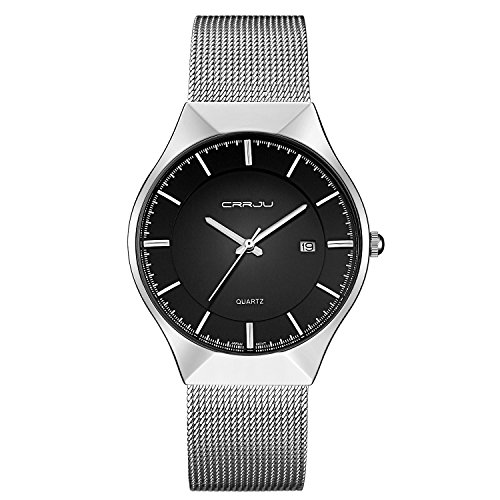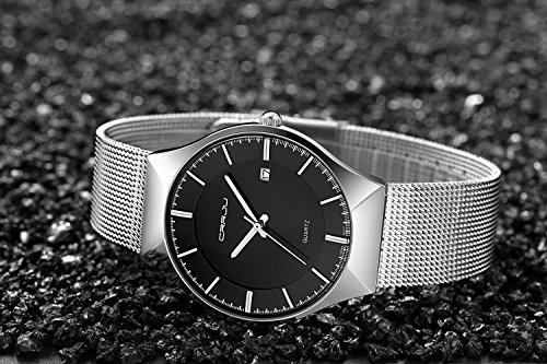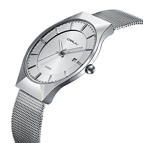 -. Title : AFFUTE Slim Men's Date Analog Quartz Wrist Watch Stainless Steel Mesh Band Fashion Dress Watches for Men