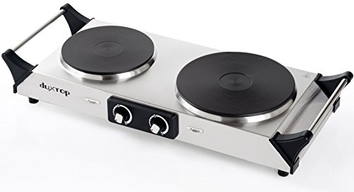 1300-watt large burner (7.5 inch diameter) for cooking or boiling water, and a 500-watt small burner (6 inch diameter) for simmering or warming.