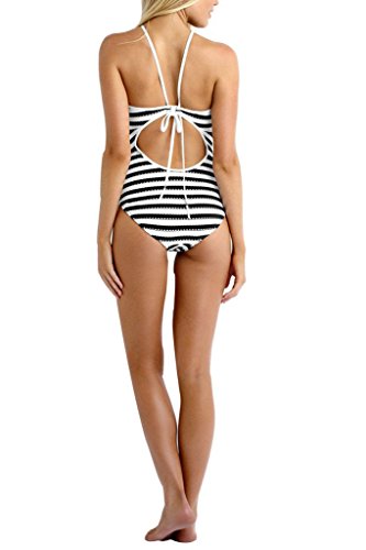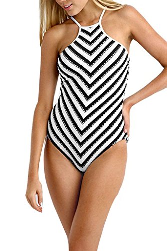 FARYSAYS Womens Monochrome Striped High Neck One Piece Maillot Swimsuit Plus Size