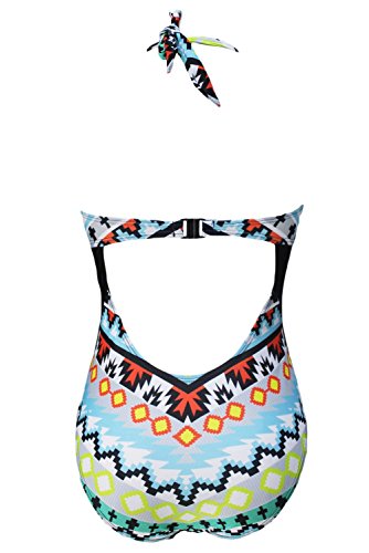 FARYSAYS Womens Colorful Tribal Print High Neck One Piece Maillot Swimsuit Plus Size