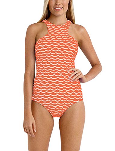 FARYSAYS Womens Orange White Tidal Wave High Neck One Piece Swimsuit Maillot XXL