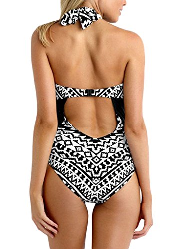 FARYSAYS Womens Monochrome Tribal Print High Neck One Piece Maillot Swimsuit Plus Size