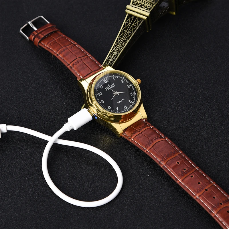 Electronic usb lighters:Men's quartz wristwatches Sports watch man