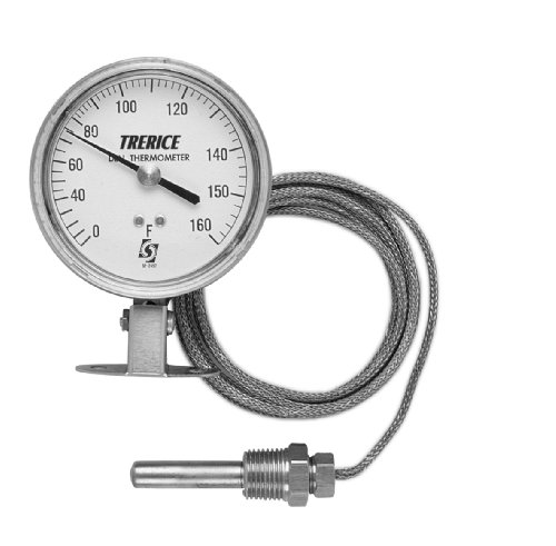 Trerice V80025110B0105 Remote Mounted Dial Thermometer, Vapor Actuated, 3.5" SS case with adjustable mounting bracket, 30-240˚F, 5' copper capillary, 2" copper bulb