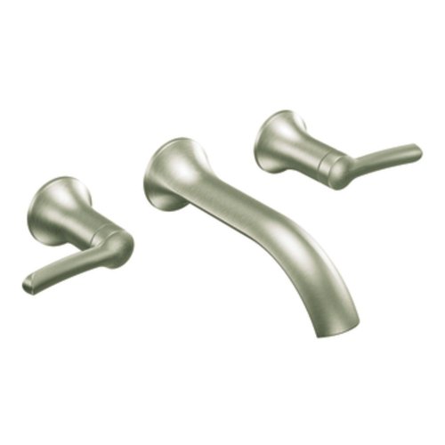Moen Ts41706Bn Fina Two-Handle Low Arc Wall Mount Bathroom Faucet, Brushed Nickel