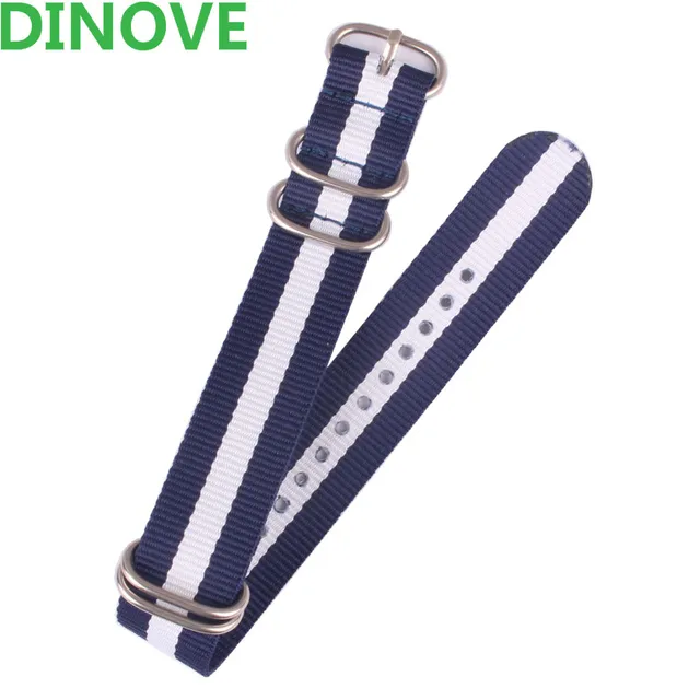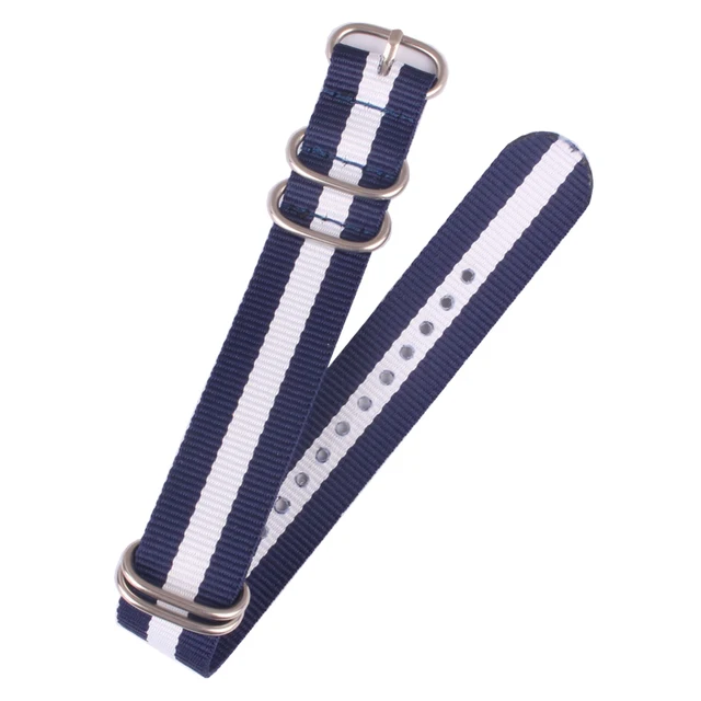 | [해외]18/20/22 미리메터 ZULU 네이비 화이트 네이비 스트라이프 링 버클 손목 섬유 짠 나일론 시계 스트랩 시계 밴드 |