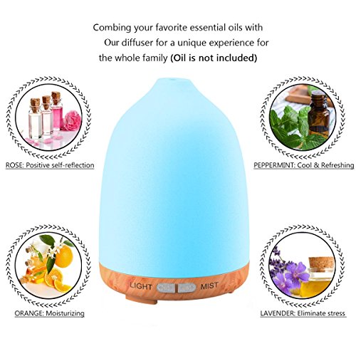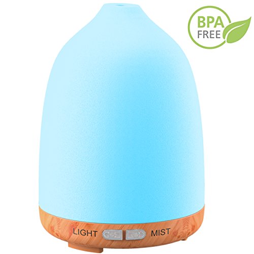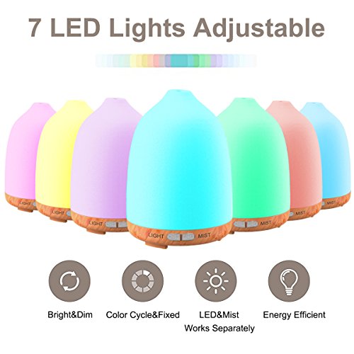 Ms Kelly Essential Oil Diffuser, 120ml Wood Grain Aroma diffuser, Cool Mist Ultrasonic Aromatherapy Diffuser, 7 LED Colors Adjustable and Waterless Auto...