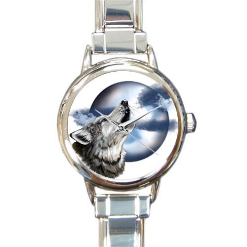 -. Title : Personalized Watch Howling Wolf At full Moon Round Italian Charm stainless steel Watch