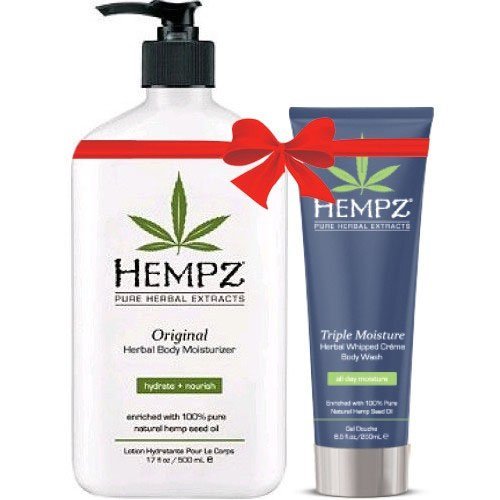 -. Feature : Bundle of h.e.m.pz Original Herbal Body Moisturizer (17 Oz) and Triple Moisture Herbal Whipped Creme Body Wash (8.5 Oz) / 100% Pure Natural h.e.m.p Seed Oil / Nurturing, non-drying formula keeps skin smooth and soft / Rich antioxidants and fatty acids helps keep the skin moisturized