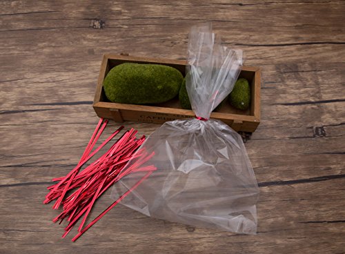 Mini Skater 100Pcs Clear Treat Bags OPP Cello Cellophane Bag With 100Pcs Gold Color Twist Ties For Wedding Gift Candy Cookie Bakery Bread Dessert (5" x 7")