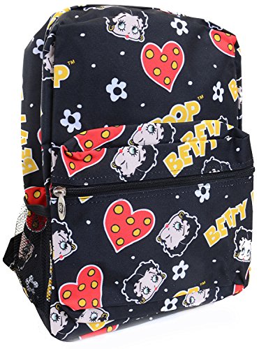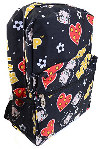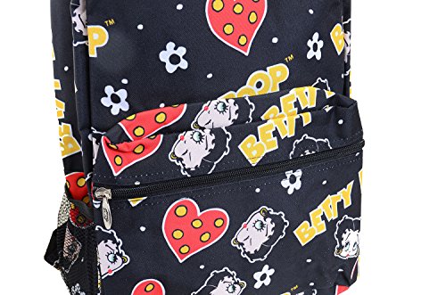 -. Title : Betty Boop Black Red Hearts Flowers Backpack Purse