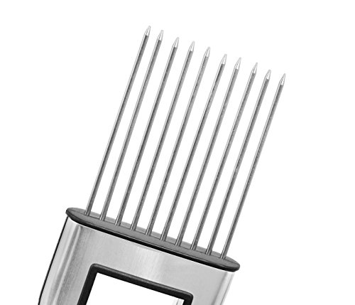 GUIDE FOR SLICING: Onion fork helps guide your knife creating a perfectly spaced and even slices