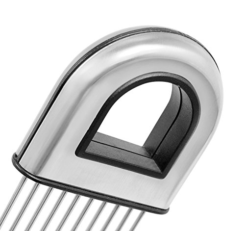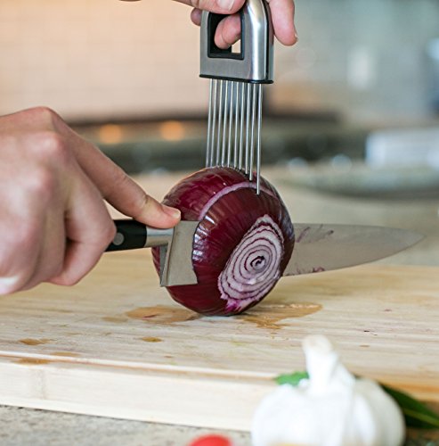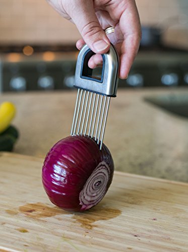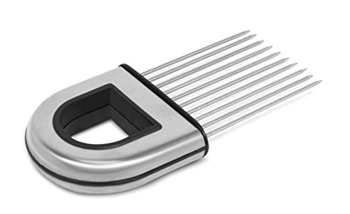 KITCHEN ESSENTIAL: The Onion Fork is simple yet uniquely designed. Equipped with stainless steel prongs to hold and slice the onion, vegetable or fruit hands free