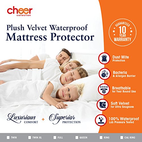 -. Title : Cheer Collection Noiseless Soft Velvet Plush 100% Waterproof Mattress Protector