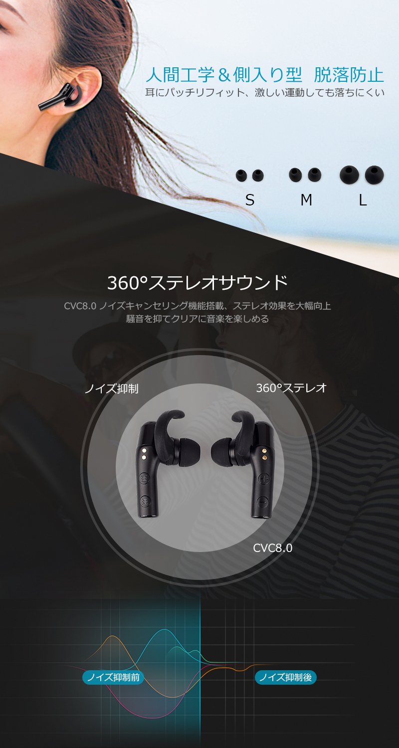 【カナル型·音漏れ防止】CVC8.0ノイズキャンセリング機能を搭載、外部の騒音を抑えます。独自のデジタル信号処理や、ステレオサウンドと低音用の高品質チップが備えており、重低音のグルーブ感をダイレクトに伝達し、圧倒的な量感の低音を正確なリズムで再現します。カナル型としては密閉の割に音場が広く全体的に濃厚な味付けながら、低音から高音まで不足ない解像度も共存しています。厄介な配線もなく左右分離型のため、片耳でも両耳でもios/android/Windowsなどの各機種に対応が可能です。