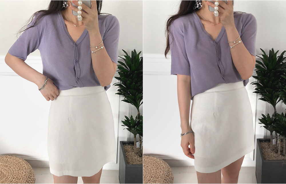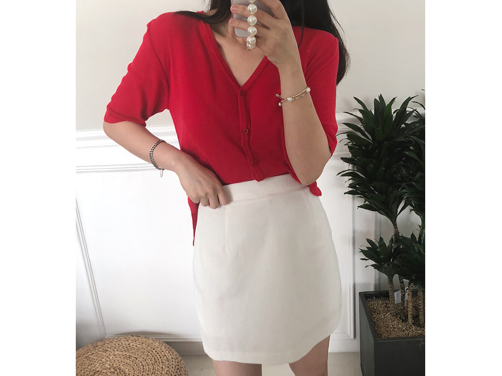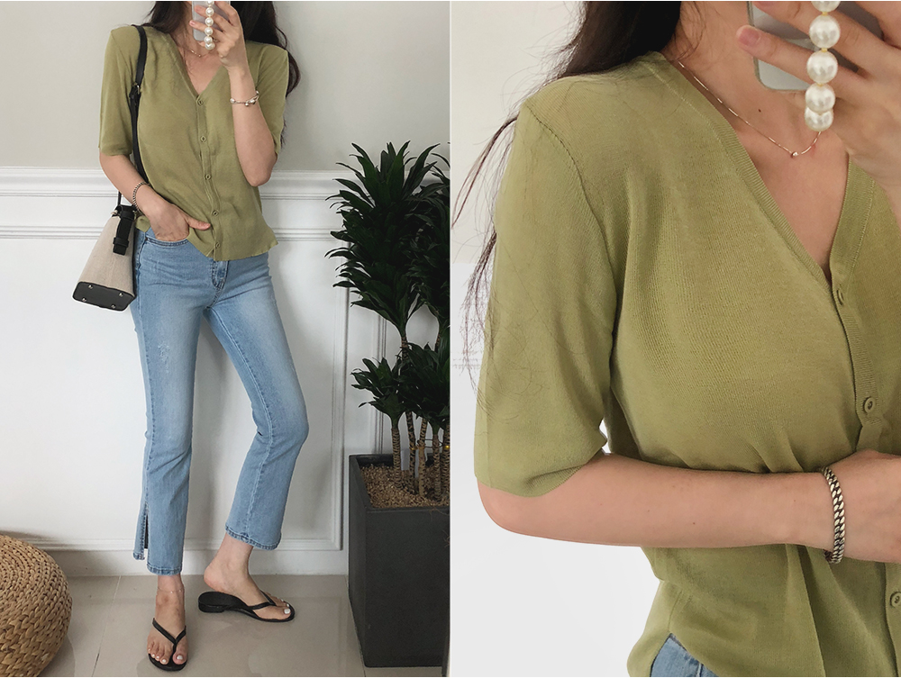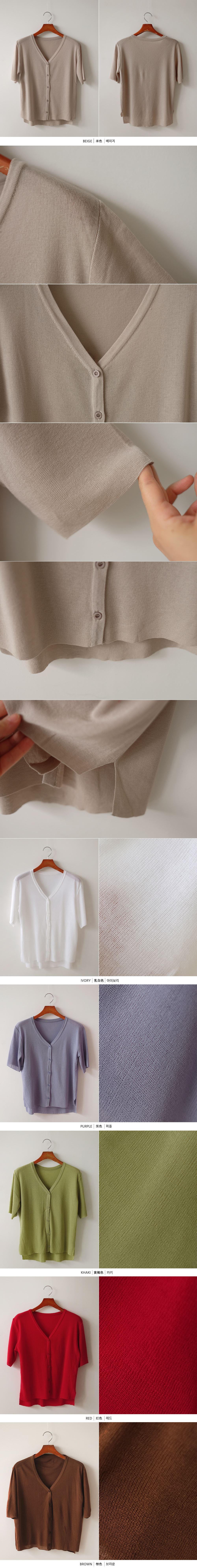 5부 브이넥 반팔 니트 가디건