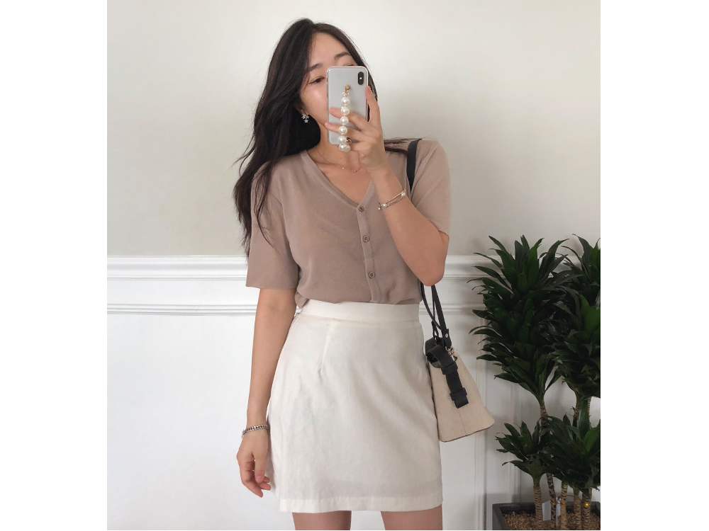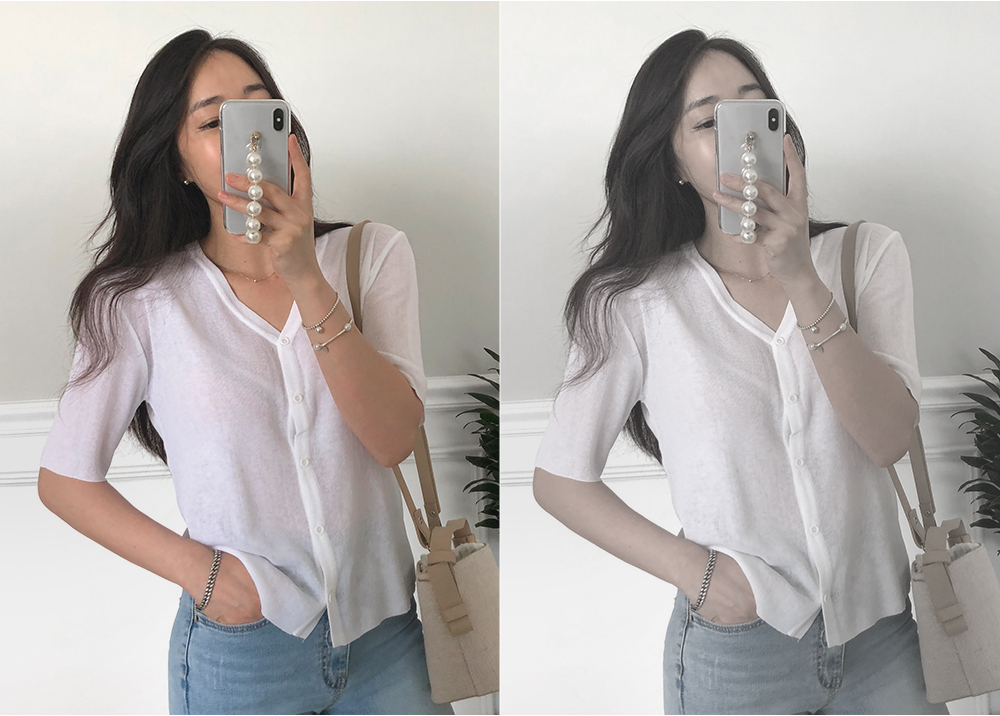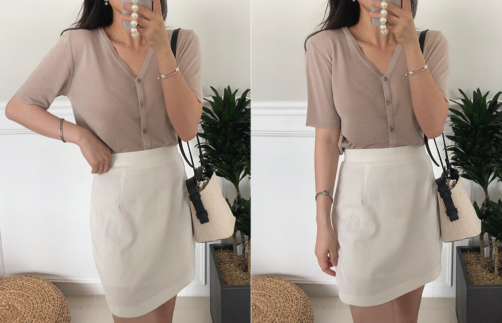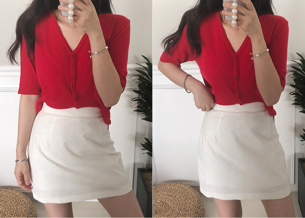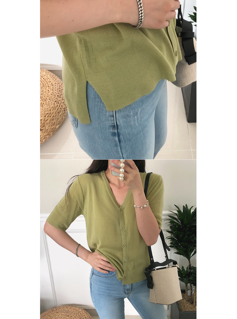 5부 브이넥 반팔 니트 가디건