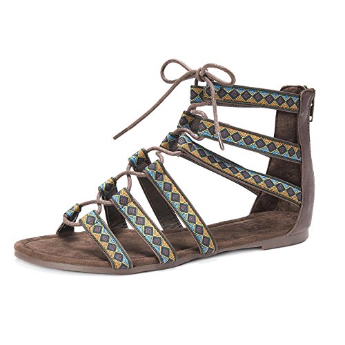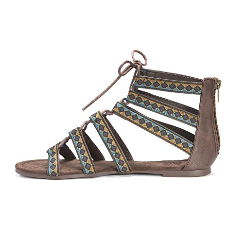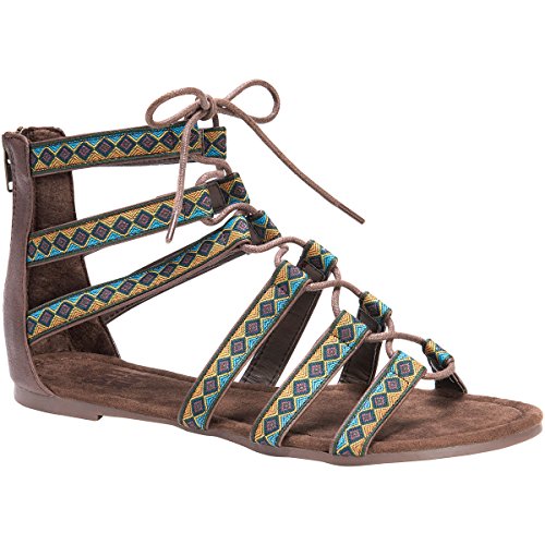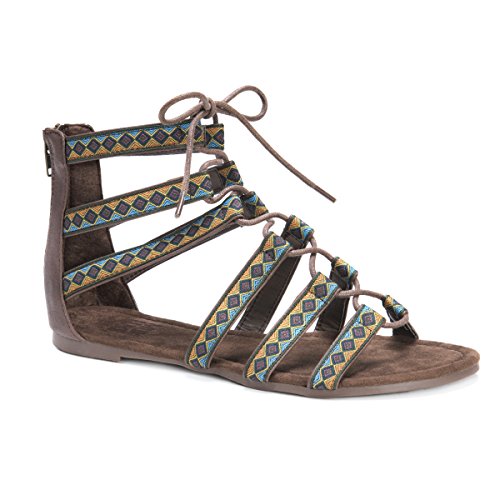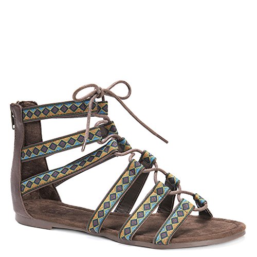 Studio : Muk Luks Publisher : Muk Luks Binding : Apparel Product Description Grab muk luks women's jessica sandals and hit the town with this strappy sensation. this sandal offers comfort without compromising your fashionable style. the gladiator shape and tie closure allows for a comfortable fit. this style is available in colors black, brown, and sepia in whole sizes 6-10 and has a flat heel. spot clean and lay flat to dry. imported 0