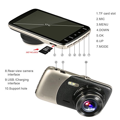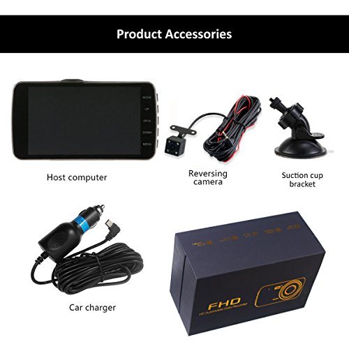 - 【DUAL-LENS DASH CAM】1080P video resolution recording,170 degree front camera + 120 degree weatherproof rear camera.With magical WDR function which is a advanced sensor technology that is used to the device.It makes video image more clearly.