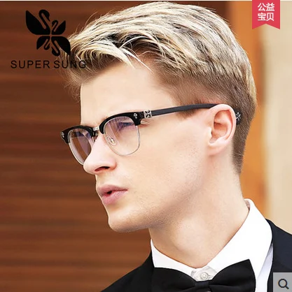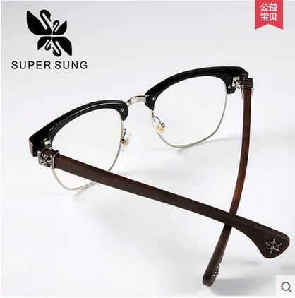 | [해외] Super sung 안경 안경 프레임 손으로 만든 흑단 복고풍 하프 프레임 안경 조수 안경 1012 |