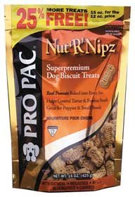 -. Feature : Pro pac nut r nipz are the perfect way to reward your dog while providing a delicious supplement to his diet. / Formulated to compliment pro pac superpremium dog food. / Nut r nipz have savory peanuty flavor blended with oatmeal, apples, and blueberries.