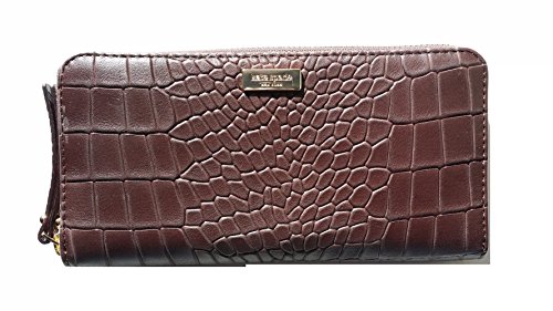 -. Binding : Apparel -. Brand : kate spade new york -. Color : brown -. Department : womens -. EAN : 0098689798073 -. Feature : Brown croc embossed leather with polished hardware / Zip around style wallet with KS staple on front and open slip pocket on back / Leather and fabric interior with 12 card slots, and full length bill compartments / Center zippered compartment / Measures approximately 7.75" (L) x 4" (H) x 1" (W) -. Model : WLRU2002 -. MPN : WLRU2002 -. PartNumber : WLRU2002 -. ProductGroup : Apparel -. ProductTypeName : BAG -. Size : Medium -. Title : Kate Spade Logan Court Neda Brown Embossed Leather Zip Around Wallet -. UPC : 098689798073 Wrapped in brown textured leather embossed in a crocodile pattern with light gold plated hardware. This Kate Spade zip around wallet is accented with the Kate Spade logo staple on the front and features a full length lined slip pocket on the back. The interior is red leather and custom khaki Kate Spade logo printed fabric. The interior has a center zippered coin compartment, 12 card slips and full length bill compartments. The overall measurements are approximately 7.75" (L) x 4" (H) x 1" (W).