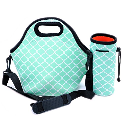 JDWNF Reusable Lunch Bags Carry Cases with Water Bottle Tote, Insulated lanch Tote Neoprene Water Resistant Portable Lanch boxs Handbag Pouch with Zipper Strap Perfect for Women Men Kids (Hot Blue)