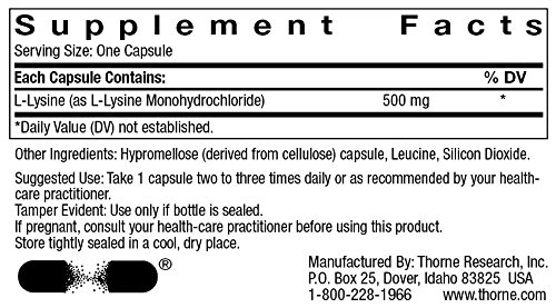 -. Title : Thorne Research L-Lysine 60 Vegetarian Capsules