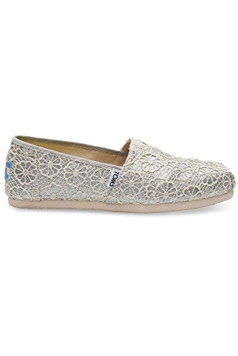 -. Title : TOMS Women's 10009299 Silver Crochet Glitter Alpargata Flat