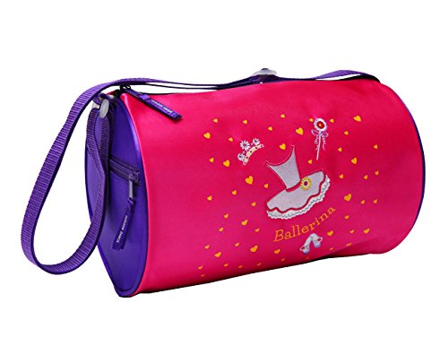 Product Description A combination of embroidery, applique, and screen print ballet tutu design on one side. Zippered main closure. Zippered end pocket. No pockets inside. Fully lined. Adjustable-length strap. Beautiful, vivid colors. Luxurious satin finish. Small, 10" x 7" in diameter. Material: microfiber. Recommended ages 3 to 8 years for carrying just the basics: flats, leotard, and tights. 0
