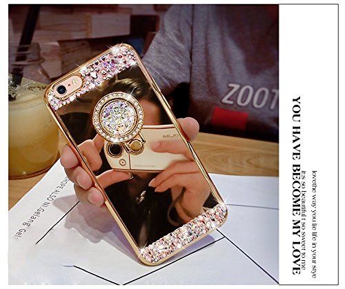 iPhone 8 Plus/7 Plus Case,Inspirationc Luxury Crystal Rhinestone Soft Rubber Bumper Bling Diamond Glitter Mirror Makeup Case for iPhone 8 Plus 5.5 Inch with Detachable 360 Degree Ring Stand--Gold