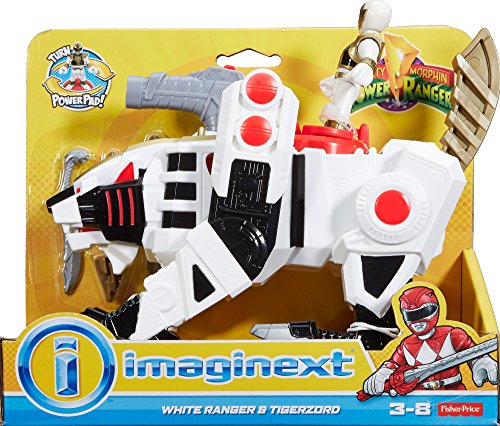 -. Binding : Toy -. Brand : Fisher-P.R.Ice -. EAN : 0742359512123 -. Feature : Turn Power Pad to raise the Tigerzord's left leg and activate his paw-swiping action! / Push button to fire projectiles! / Tigerzord's back legs are moveable and posable / Includes White Tigerzord, Mighty Morphin White Power Ranger figure, sword, projectile launcher & 2 projectiles / Add this duo to other Imaginext Power Rangers toys for some morphinominal action-packed adventures! (Each sold separately and subject to availability.) -. IsAdultProduct : 0 -. Label : Fisher P.R.Ice - Import -. Manufacturer : Fisher P.R.Ice - Import -. Model : DFX59 -. MPN : DFX59 -. PackageQuantity : 1 -. PartNumber : DFX59 -. ProductGroup : Toy -. ProductTypeName : TOYS_AND_GAMES -. Publisher : Fisher P.R.Ice - Import -. Studio : Fisher P.R.Ice - Import -. Title : Fisher-P.R.Ice Imaginext Power Rangers White Ranger and Tiger Zord -. UPC : 887961183801 -. Warranty : No Warranty