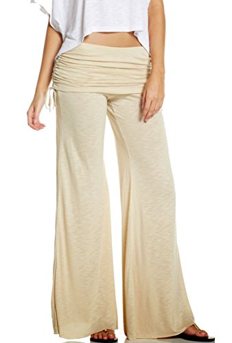 Elan Women's Shirred Rollover Waist Pant (Large, Tan)