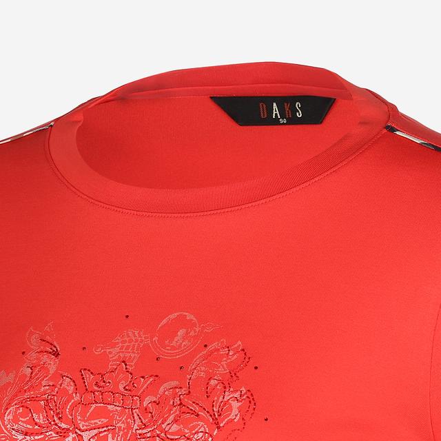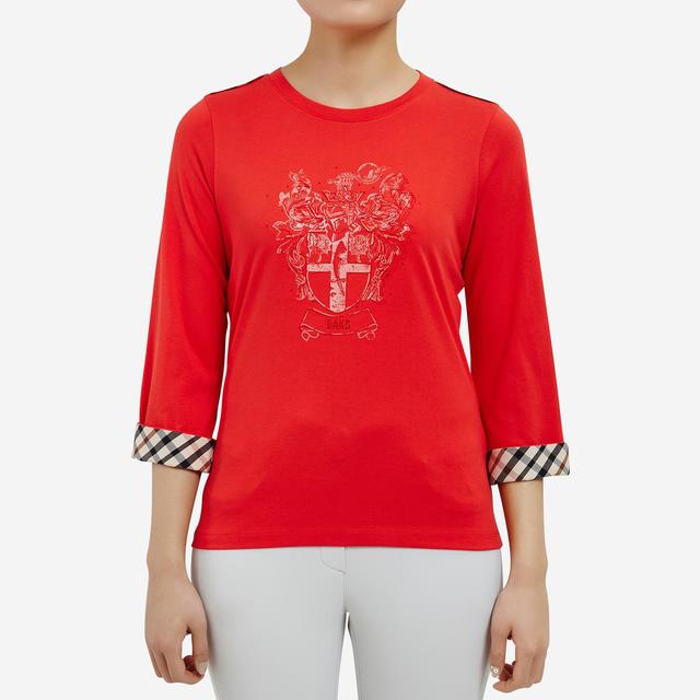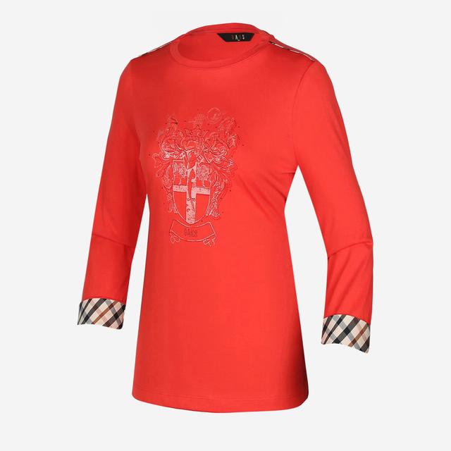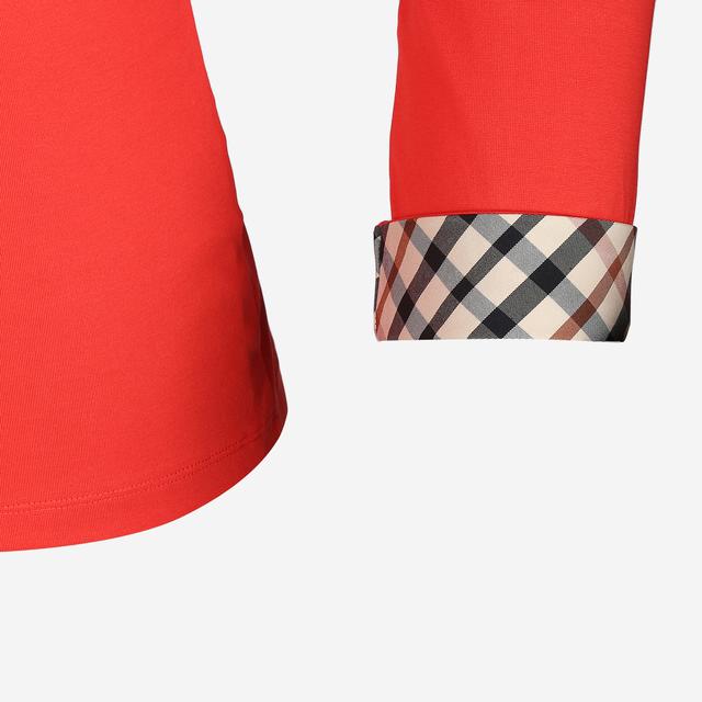 중앙에 로고 디테일이 살아있는 로고 프린트와 소매 롤업 장식에 체크 패턴을 배색하여 브랜드의 감성을 보여주는 7부 티셔츠입니다.