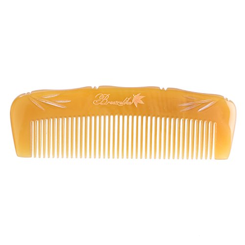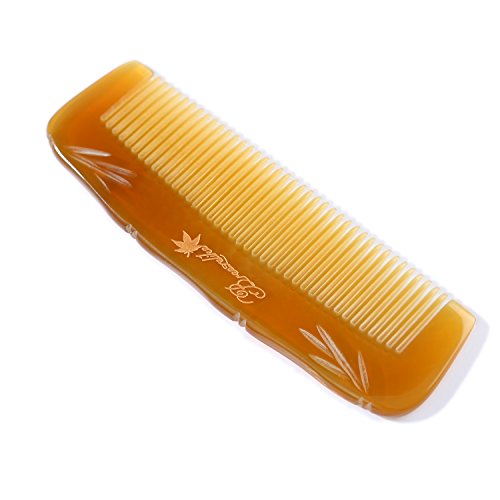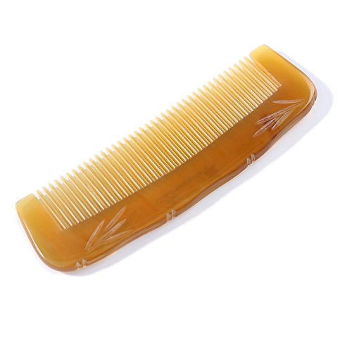 Breezelike No Static Tibetan Yak Horn Pocket Comb with Bamboo Carving