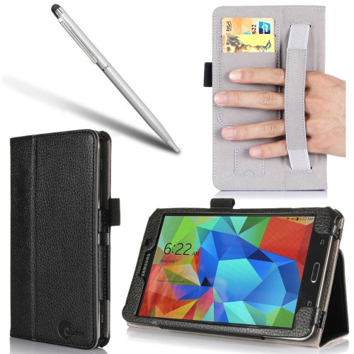 i-BLASON Samsung Galaxy Tab 4 7.0 Case - Leather Book (Elastic Hand Strap, Multi-Angle, Card Holder) With Bonus Stylus One Year Warranty (Black)
