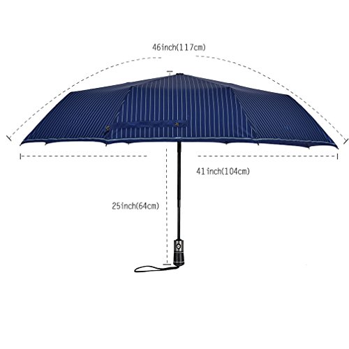 -. Title : Auto Open/Close Heavy Duty Travel Umbrella Stripes Folding Parasol 8 Ribs
