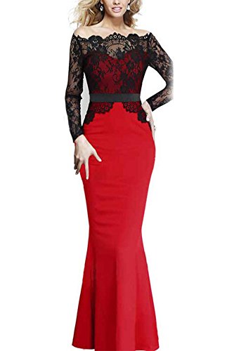 Mori Lady Women's Mermaid Long Sleeves Lace Long Bridesmaid Evening Dress