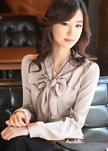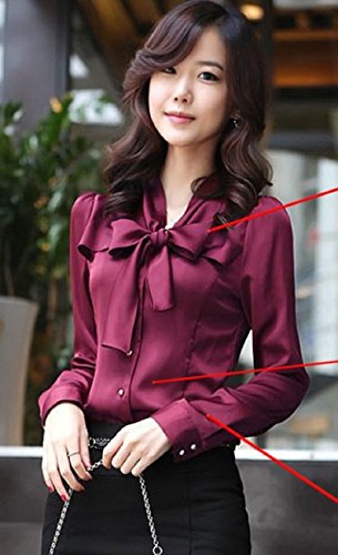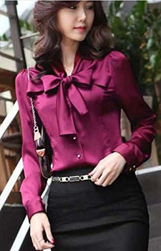 -. Feature : 光沢感が素敵な リボン 付き サテンブラウスです。スタイリッシュでスリム コンパクトなシルエットが、きれいめで、華奢な女性らしい印象に。秋・冬にピッタリなシックで落ち着いた深めの色合いが素敵です。 / 入学式 卒業式 発表会 等の フォーマル セレモニー シーンにもピッタリの大人の気品漂うブラウス です。又、礼服としてや各セレモニー・シーンにも。秋冬~・春・夏、一年中着用OK。1枚あると便利です。 / サイズは詳細をご参照下さい。細身 小さめ な着用感の為、1サイズ又は2サイズ以上、上のサイズのご購入を推奨しております。 / Vネック の首元に上品な ボウタイ が飾られていて、清楚かつエレガント。ビジネスにも◎。スーツに、トップスとして、ストレッチパンツやタイトスカートと合わせても。ヒールやパンプス等の靴も引き立ちます。 / サイズに差異がある場合もございます。商品画像と実際の色は、撮影時の照明の状況により異なって見える場合がございます。予め、ご了承下さい。