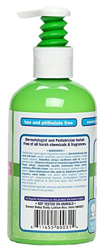 TruBaby Sweet Baby Daily Lotion offers moisturizing that will leave your baby's body velvety soft and irresistibly snuggly with a natural fresh, delicate citrus scent. This moisture-rich lotion uses cupuacu butter and shea butter to nourish sensitive, delicate skin. Babes that are tuckered out after a long day of exploring may find soothing benefits from the lavender, citrus, and orange oil. The formula is pediatrician- and dermatologist-tested; Eczema-safe; free of Gluten, phthalates, and parabens; and certified by PETA as animal-cruelty free. TruBaby Sweet Baby Daily Lotion comes in an seven-ounce BPA-free bottle with a pump top. TruKid was founded by Jennifer Adams Bunkers, a mother of six children, to create personal-care products for kids that use only natural ingredients and essential oils instead of bad-smelling, unhealthy chemicals. TruKid is dedicated to providing all-natural solutions to teach kids healthy habits while making parents' lives easier.Feature