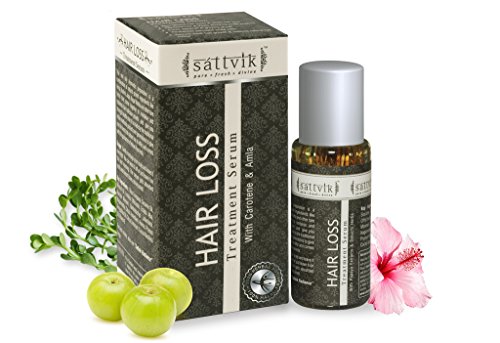 Sattvik Organics Hair Loss Treatment Serum For Thick & Strong Hair With Carotene & Amla This non oily Ayurvedic preparation is a combination of natural growth ingredients like Amla, Brahmi, Japa, Nagar Motha and other rare herbs that come together to revitalize and replenish hair follicular growth and give you strong & healthy hair. It is made by the traditional Indian methods passed over generations to give you the best that nature has to offer and comes with the guarantee of Indian Ayurveda. Key Ingredients : Olea Europaea, Sesame Oil, Emblica Officinalis, Eclipta Alba, Mineral Oil, Bacopa Monneri, Nardostachys Jatamansi, Nagarmotha, Citrus Aurantium, Heena, Prunus Amygdalus Oil, Citrus Limonum, Cocos Nucifera Oil. Usage Directions : Gently Massage your scalp. Leave it overnight. Can be washed off or left on in the morning. Use 1-2 times a week. For best results, also use Sattvik Organics Radiance Shampoo & Sattvik Organics Radiance Conditioner.Feature