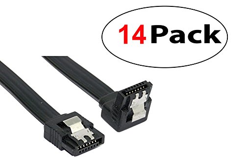 (14 x Sata 3 Data Cable) SATA III (SATA 3) cable black (60cm) with Locking Latch straight to Right Angle 90 Degree | compatible up to S-ATA/600 | Serial ATA | 1,5GBs/3GBs/6GBs (backward compatible)