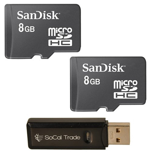 -. Feature : Sandisk 16GB (8GB x2) MicroSD HC Memory Card 2-Pack / Listing contains: 2x memory card, 2x case, 1x card reader / Comes with SoCal Trade Dual Slot Memory Card reader / Bulk packed in case