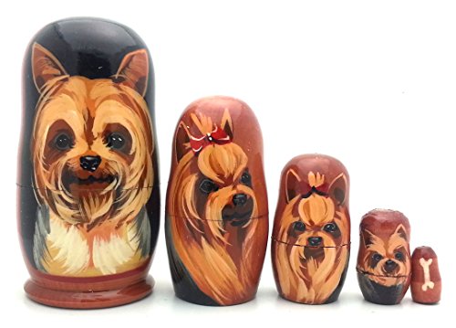-. Title : DOG Yorkshire Terrier nesting dolls Russian Hand Made 5 piece matryoshka Set Yorkie 4"H