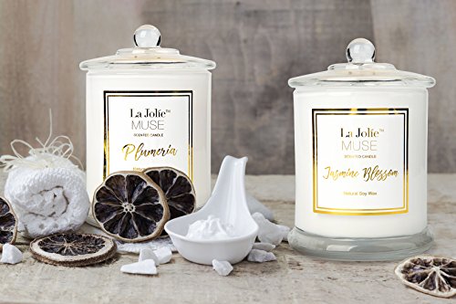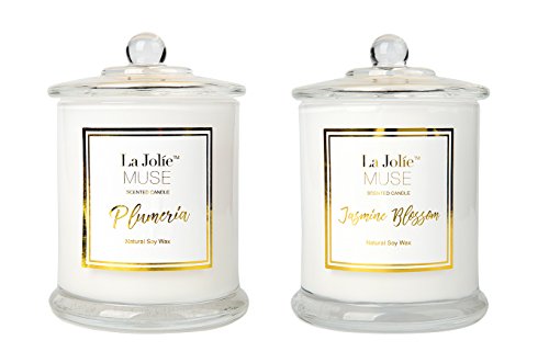 ★BEAUTIFULLY 2 PACK SCENTED CANDLE - Jasmine Blossom scent, another one is Plumeria. They will fill your space with a heady, long lasting scent.