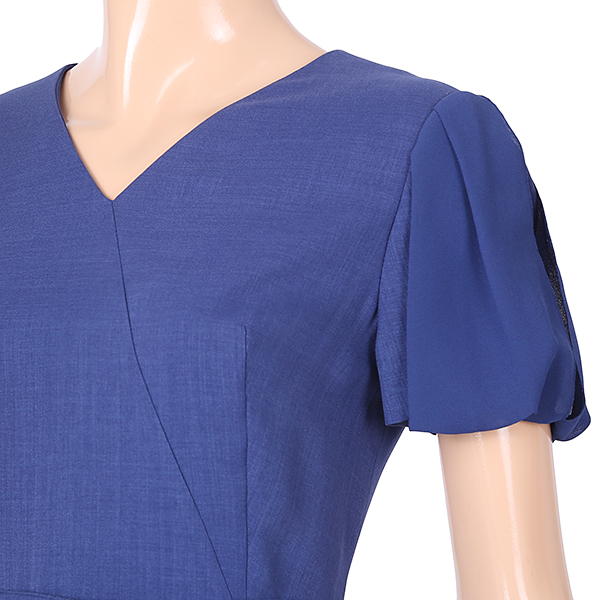 여성스럽고 귀여운 쉬폰펍덧소매의 매치로 독특함을 잘살렸고 A라인의 플레어스커트로 복부와 엉덩이라인을 슬림하게 연출합니다
