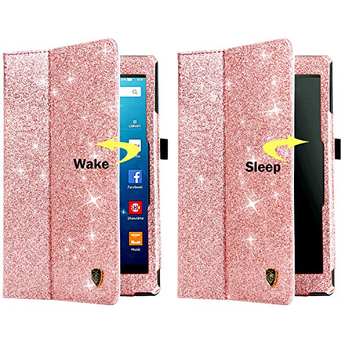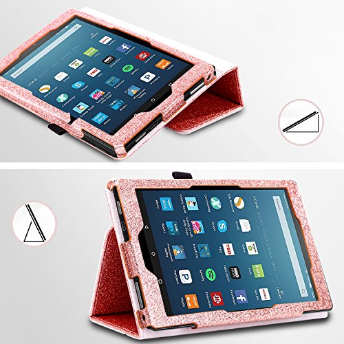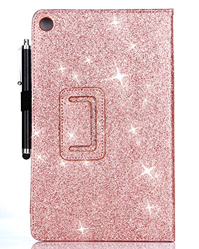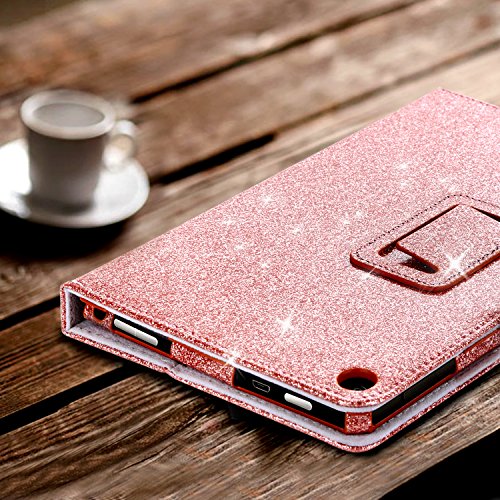 Fire HD 8 Case(2016 6th Generation), BENTOBEN Glitter Sparkly Folio Folding Stand Cover with Stylus Holder & Auto Wake/Sleep Luxury Bling Shiny Smart Case for Fire HD 8 Tablet 6th Generation,Rose Gold